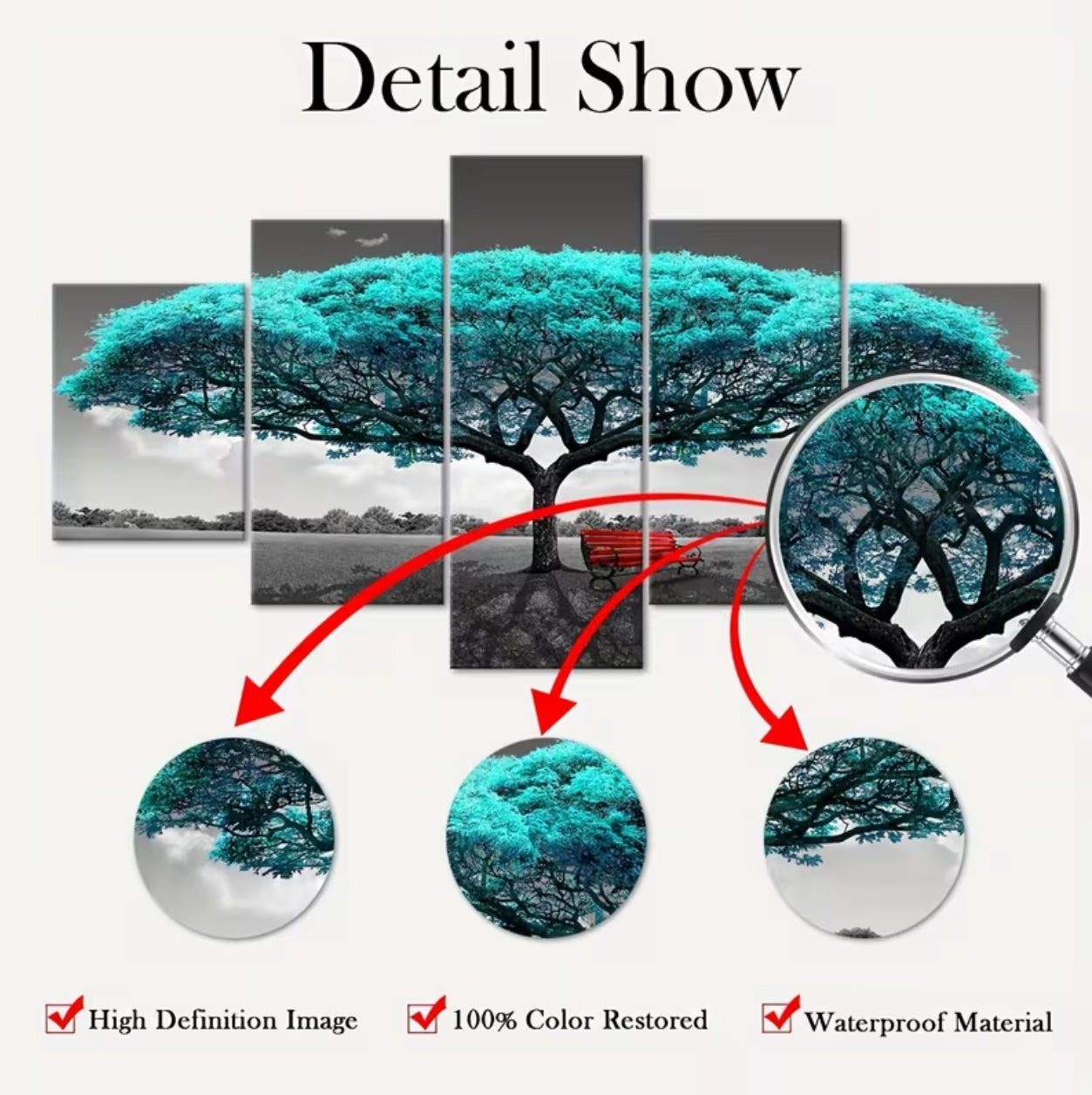 Enhance your home or office with this 5-Piece Green Happiness Tree Canvas Poster Set. Featuring a modular five-panel design, this modern wall art brings a sense of tranquility, nature, and positive vibes to any room.