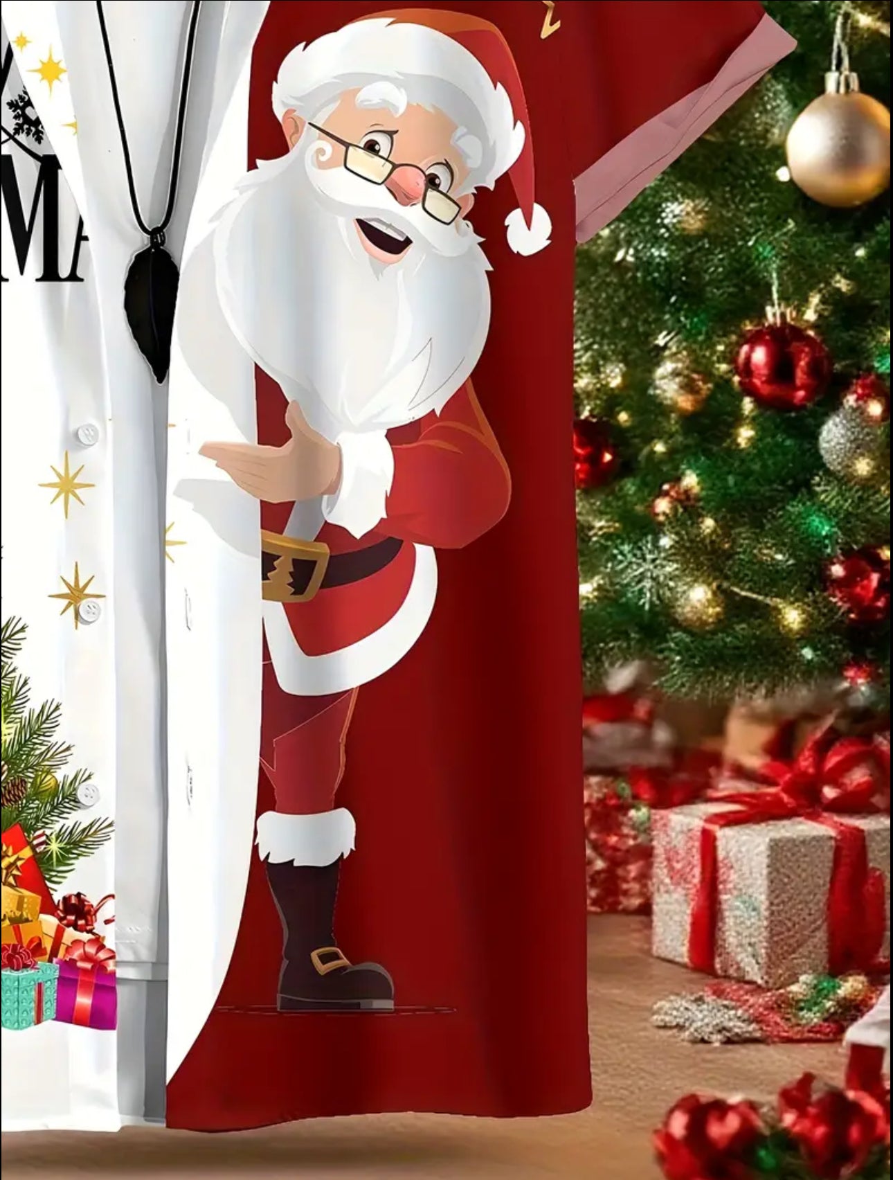 Featuring a half-button design with a structured collar, this long-sleeve shirt blends comfort with holiday flair, making it perfect for both casual and semi-formal occasions. Its wrinkle-resistant, easy-care fabric offers a smooth look all day, while the vivid Christmas print adds personality and charm to every outfit.
